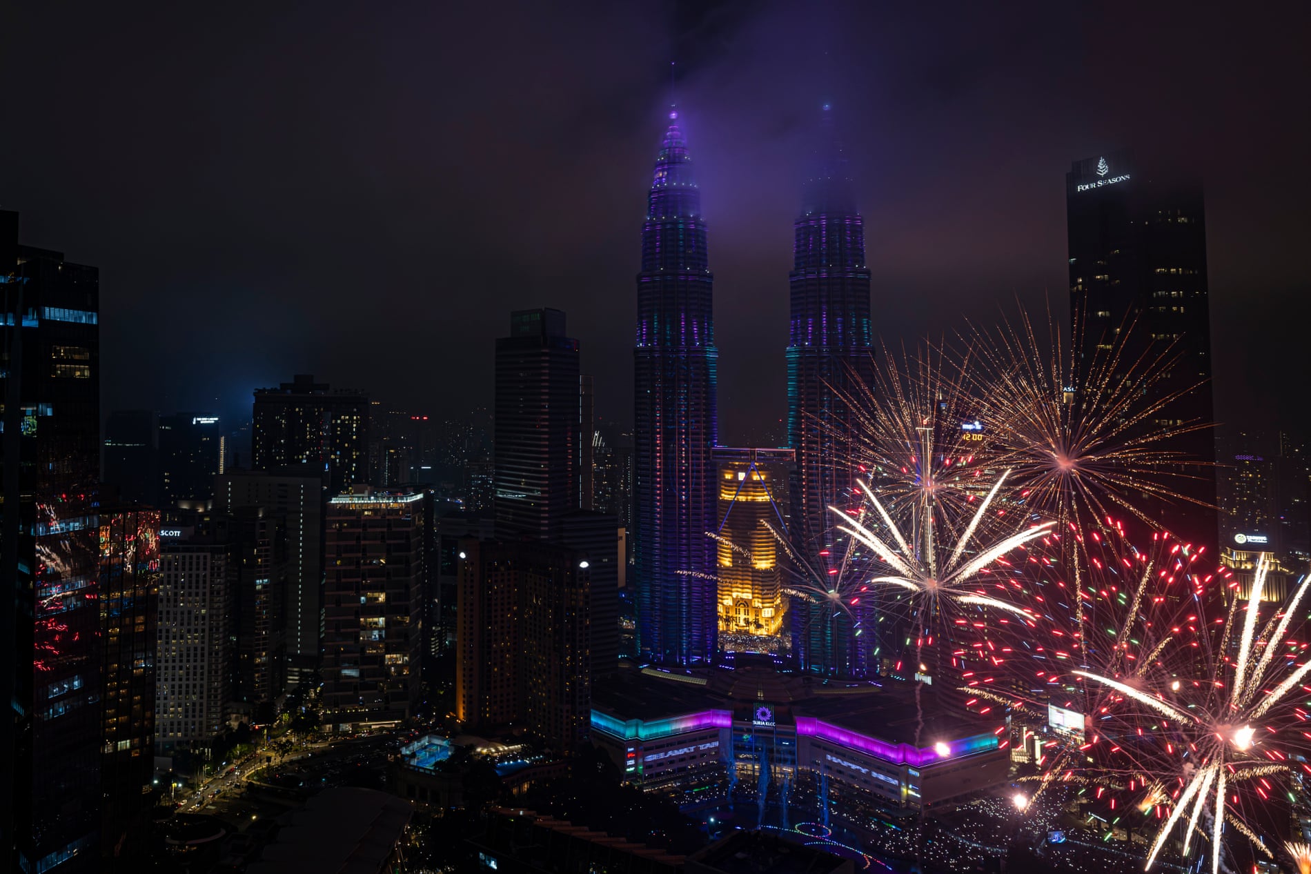 Kuala Lumpur, Malaysia: Pháo hoa thắp sáng hai tòa tháp đôi Petronas.