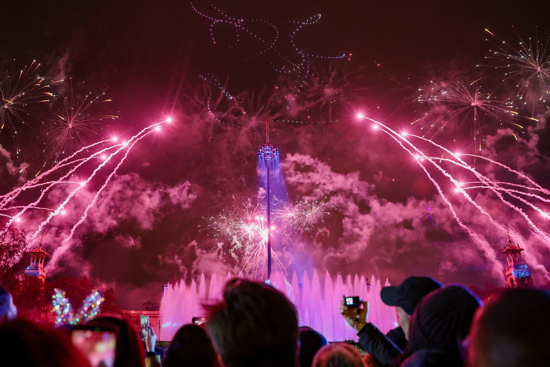 Barcelona, Tây Ban Nha: Pháo hoa rực rỡ nổ tung trong lễ đón năm mới ở Barcelona, Tây Ban Nha.