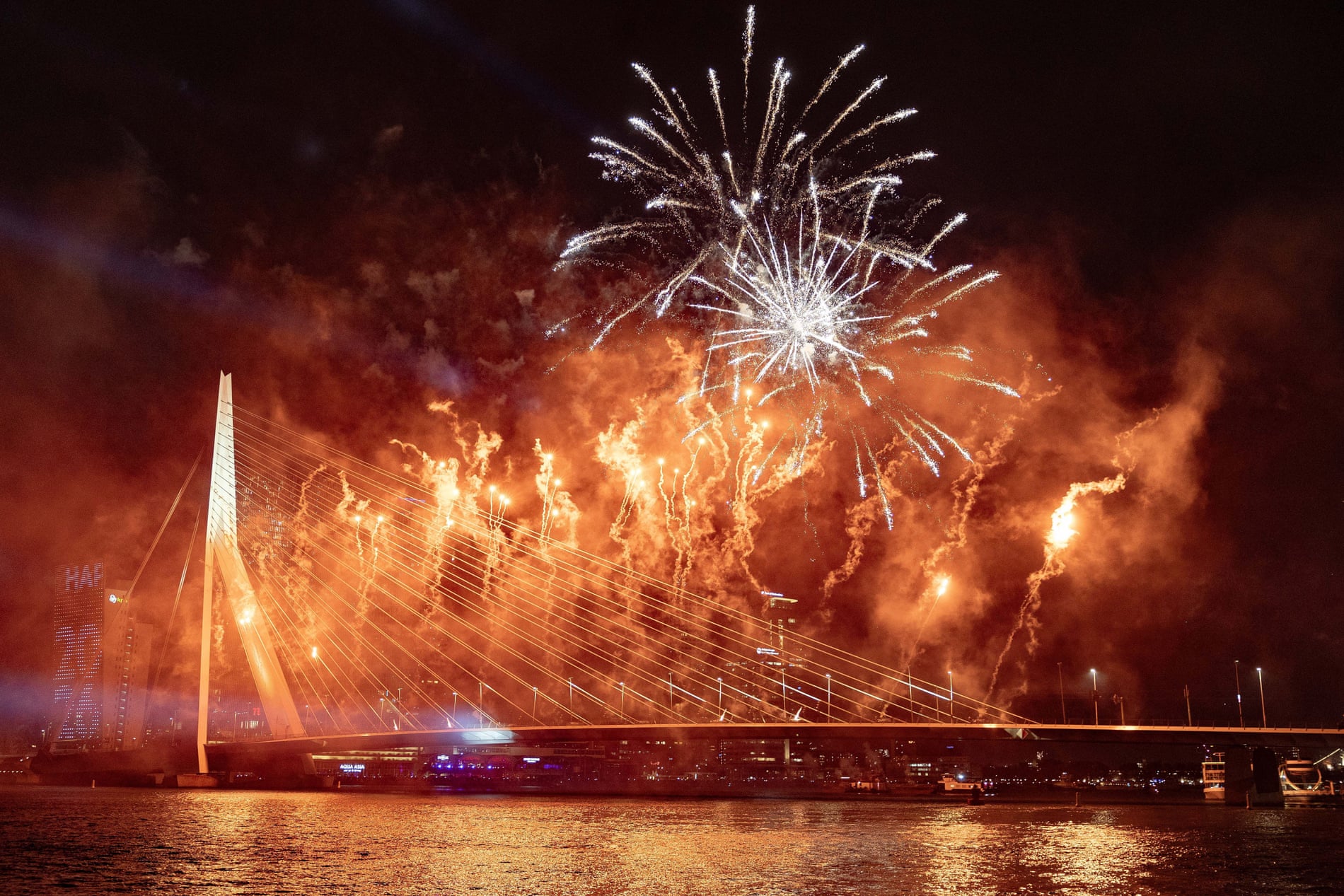 Rotterdam, Hà Lan: Màn trình diễn pháo hoa quốc gia tại cầu Erasmus. Màn trình diễn pháo hoa hoành tráng trên một trong những cây cầu nổi tiếng nhất Rotterdam này đã được tổ chức trong hơn 15 năm.